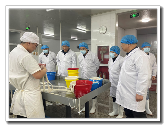 座談會后,帥長斌一行參觀了凱興畜產(chǎn)加工車間,詳細了解腸衣生產(chǎn)工藝,并和一線工人親切交流。